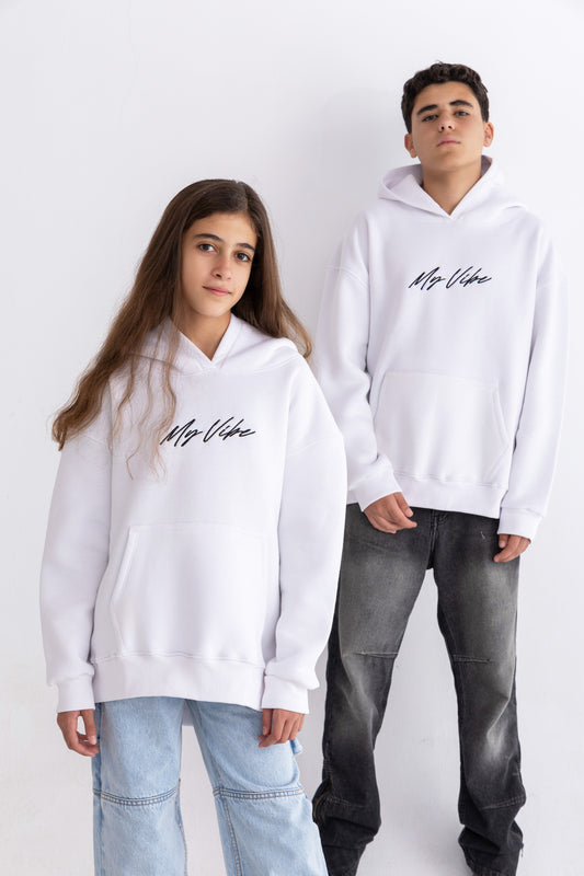 White oversized My vibe hoodie